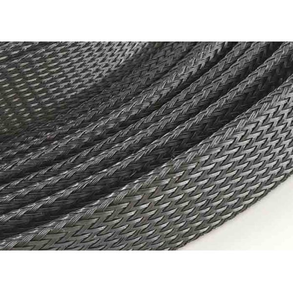 Customized PET Expandable Braided Sleeving , Black Color Flexible Cable Sleeve Images |